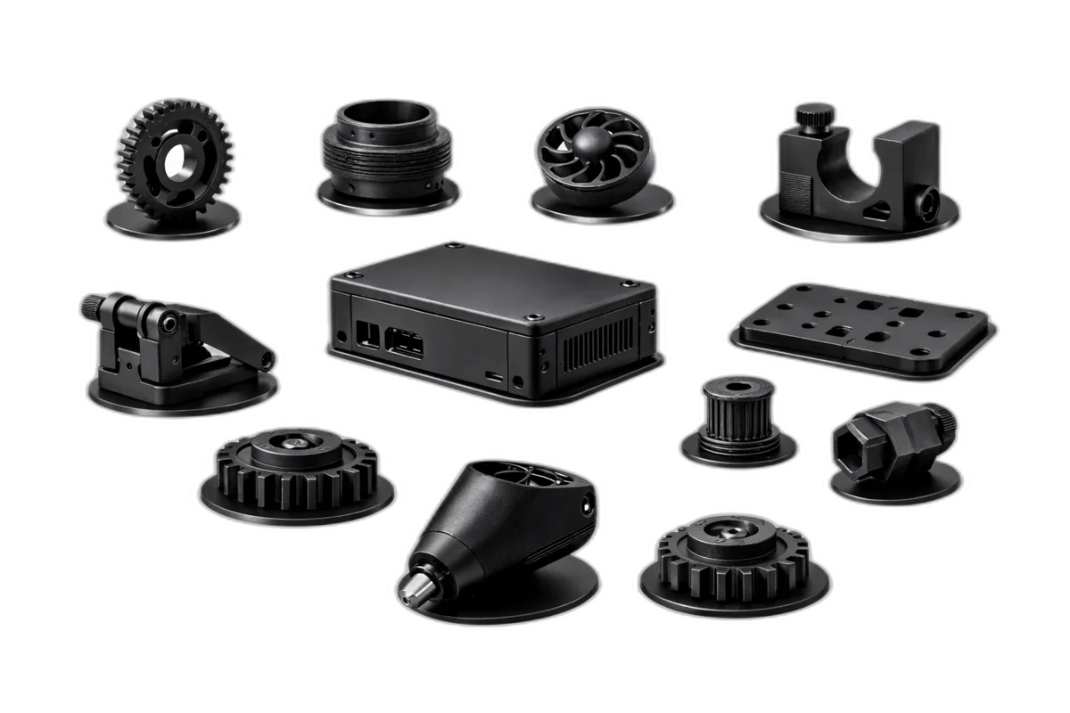 Sản xuất linh kiện chức năng, vỏ hộp thiết bị, đồ gá & đồ định vị từ file kỹ thuật. Hỗ trợ STL, STEP, OBJ dung sai ±0.1mm, thời gian sản xuất 24–72h